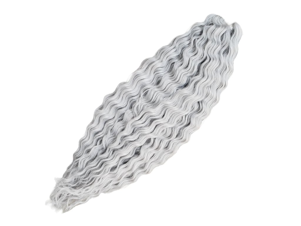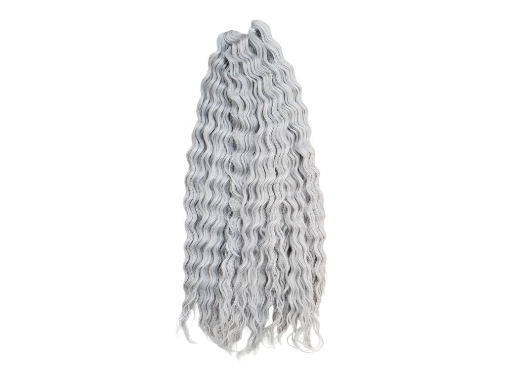 Tieto konkrétne kučeravé vlásky Crochet Braids sú čisto sivej farby Silver o dĺžke prameňov až 55cm štýlu Ariel a hmotnosti balíka 300g, ideálne pre tvorbu predĺženia vlasov afrického štýlu s kučierkami, značky Africké Vlasy, ktoré sú jedni z najkvalitnejších Crochet Braids vláskov na trhu pre tvorbu kvalitného a trvácneho predĺženia vlasov či príčeskov, alebo aj iných vlasových štýlov, ktoré s nimi môžete vytvoriť. Crochet Braids kučeravé 100% kanekalon vlásky sa už dlhé roky vyrábané jednak najmä čistých farieb (čierna, hnedá, blond, bordová, sivá apod.), pričom však pár rokov sú dostupné už aj v 2-farebných kombináciách (ombré). V najbližšej dobe očakávam, že sa na trhu objavia dokonca už aj moderné 3-farebné ombré kombinácie.