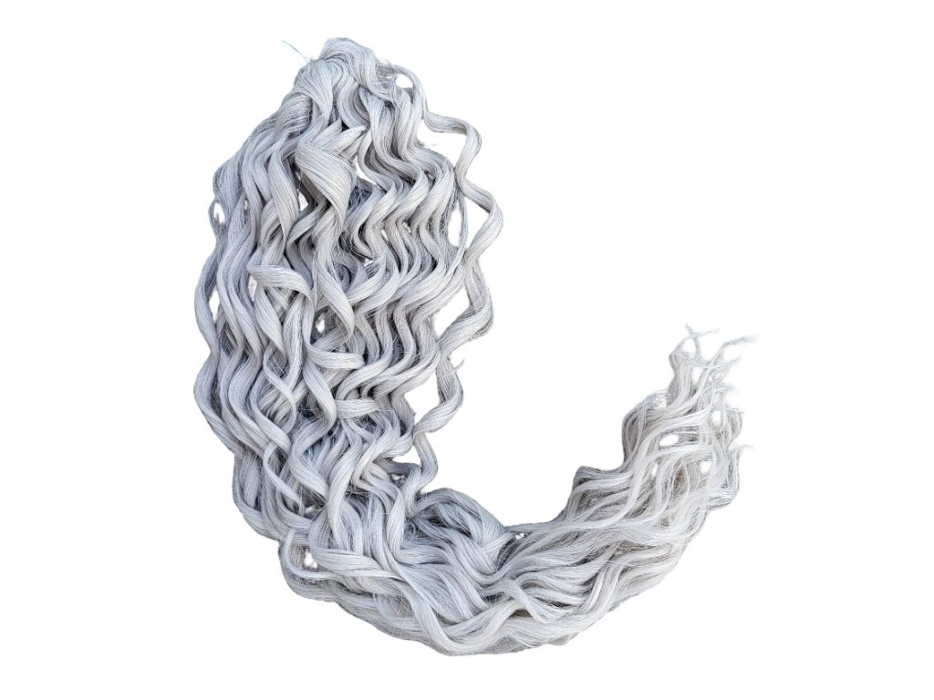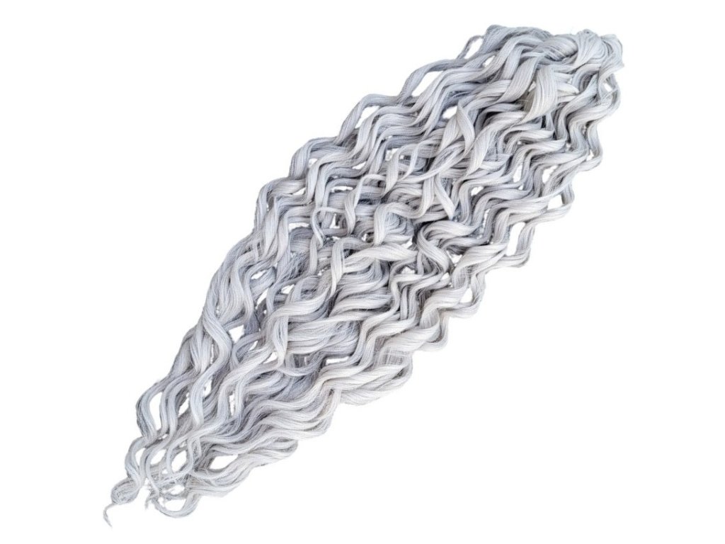 Tieto konkrétne kučeravé vlásky Crochet Braids sú 2-farebnej kombinácie sivá - svetlá sivá ombré SLV/GR o dĺžke prameňov 55cm štýlu Jessica a hmotnosti balíka 100g, ideálne pre tvorbu predĺženia vlasov afrického štýlu s kučierkami, značky Africké Vlasy, ktoré sú jedni z najkvalitnejších Crochet Braids vláskov na trhu pre tvorbu kvalitného a trvácneho predĺženia vlasov či príčeskov, alebo aj iných vlasových štýlov, ktoré s nimi môžete vytvoriť. Crochet Braids kučeravé 100% kanekalon vlásky sa už dlhé roky vyrábané jednak najmä čistých farieb (čierna, hnedá, blond, bordová, sivá apod.), pričom však pár rokov sú dostupné už aj v 2-farebných kombináciách (ombré). V najbližšej dobe očakávam, že sa na trhu objavia dokonca už aj moderné 3-farebné ombré kombinácie.