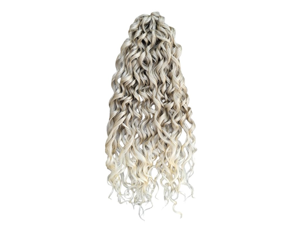 Tieto konkrétne kučeravé vlásky Crochet Braids sú 2-farebnej kombinácie blond - svetlá blond ombré T16/613 o dĺžke prameňov 55cm štýlu Jessica a hmotnosti balíka 100g, ideálne pre tvorbu predĺženia vlasov afrického štýlu s kučierkami, značky Africké Vlasy, ktoré sú jedni z najkvalitnejších Crochet Braids vláskov na trhu pre tvorbu kvalitného a trvácneho predĺženia vlasov či príčeskov, alebo aj iných vlasových štýlov, ktoré s nimi môžete vytvoriť. Crochet Braids kučeravé 100% kanekalon vlásky sa už dlhé roky vyrábané jednak najmä čistých farieb (čierna, hnedá, blond, bordová, sivá apod.), pričom však pár rokov sú dostupné už aj v 2-farebných kombináciách (ombré). V najbližšej dobe očakávam, že sa na trhu objavia dokonca už aj moderné 3-farebné ombré kombinácie.