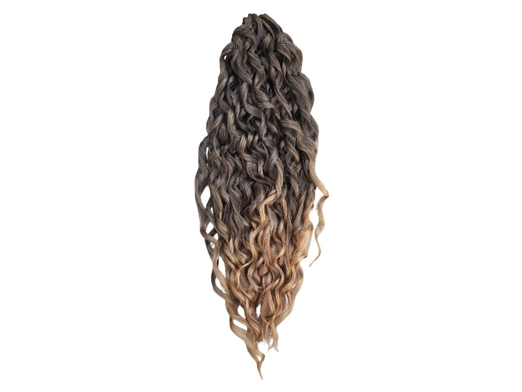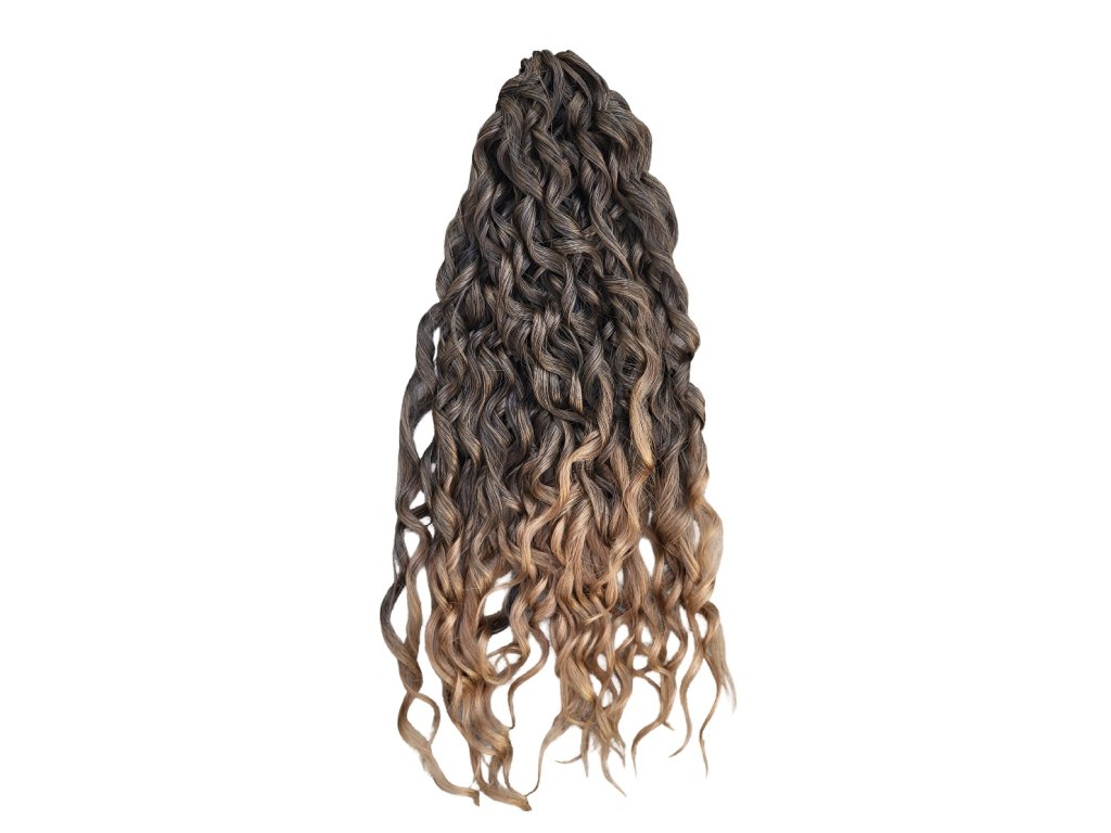 Tieto konkrétne kučeravé vlásky Crochet Braids sú 2-farebnej kombinácie tmavá hnedá - blond ombré T1B/27 o dĺžke prameňov 55cm štýlu Jessica a hmotnosti balíka 100g, ideálne pre tvorbu predĺženia vlasov afrického štýlu s kučierkami, značky Africké Vlasy, ktoré sú jedni z najkvalitnejších Crochet Braids vláskov na trhu pre tvorbu kvalitného a trvácneho predĺženia vlasov či príčeskov, alebo aj iných vlasových štýlov, ktoré s nimi môžete vytvoriť. Crochet Braids kučeravé 100% kanekalon vlásky sa už dlhé roky vyrábané jednak najmä čistých farieb (čierna, hnedá, blond, bordová, sivá apod.), pričom však pár rokov sú dostupné už aj v 2-farebných kombináciách (ombré). V najbližšej dobe očakávam, že sa na trhu objavia dokonca už aj moderné 3-farebné ombré kombinácie.