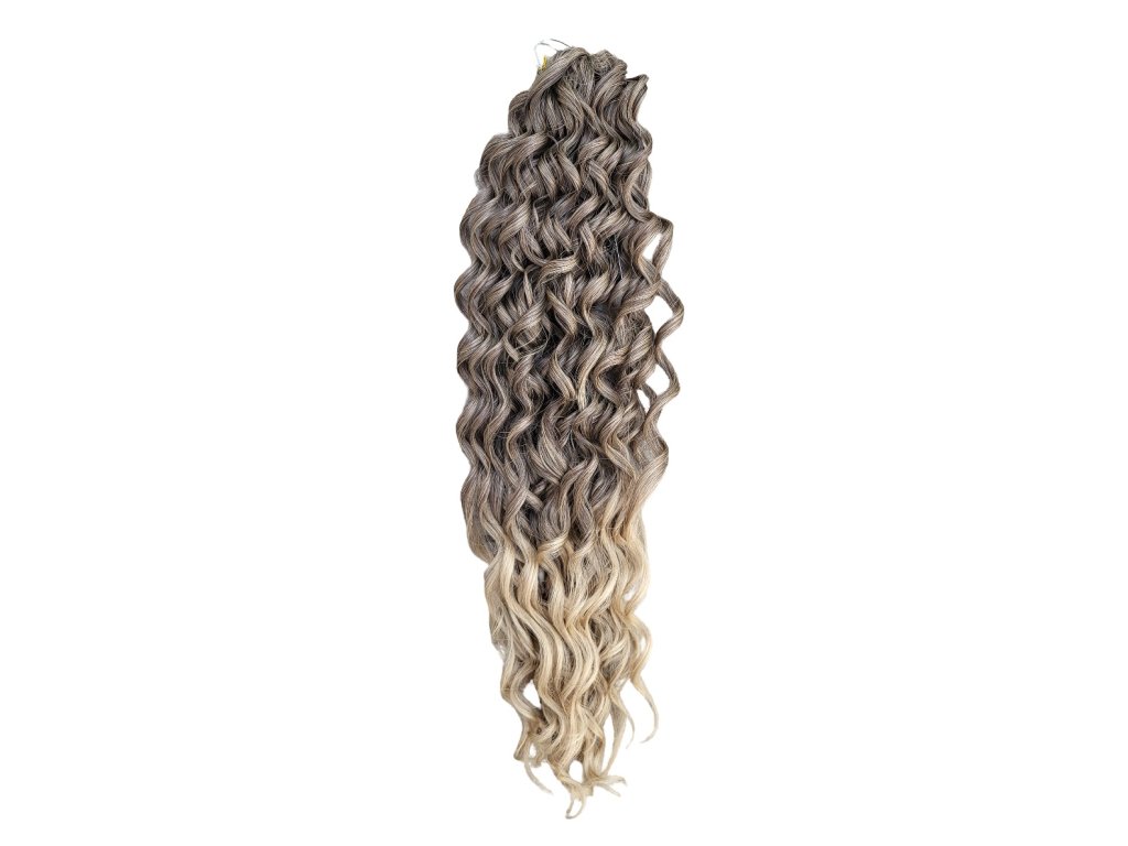 Tieto konkrétne kučeravé vlásky Crochet Braids sú 2-farebnej kombinácie tmavá blond - blond ombré T4/24 o dĺžke prameňov 55cm štýlu Jessica a hmotnosti balíka 100g, ideálne pre tvorbu predĺženia vlasov afrického štýlu s kučierkami, značky Africké Vlasy, ktoré sú jedni z najkvalitnejších Crochet Braids vláskov na trhu pre tvorbu kvalitného a trvácneho predĺženia vlasov či príčeskov, alebo aj iných vlasových štýlov, ktoré s nimi môžete vytvoriť. Crochet Braids kučeravé 100% kanekalon vlásky sa už dlhé roky vyrábané jednak najmä čistých farieb (čierna, hnedá, blond, bordová, sivá apod.), pričom však pár rokov sú dostupné už aj v 2-farebných kombináciách (ombré). V najbližšej dobe očakávam, že sa na trhu objavia dokonca už aj moderné 3-farebné ombré kombinácie.