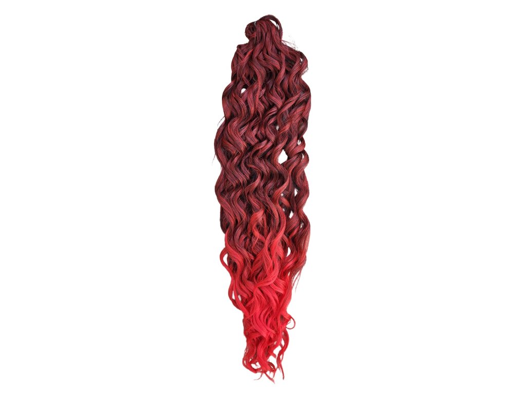 Tieto konkrétne kučeravé vlásky Crochet Braids sú 2-farebnej kombinácie bordová - červená ombré TB/RED o dĺžke prameňov 55cm štýlu Jessica a hmotnosti balíka 100g, ideálne pre tvorbu predĺženia vlasov afrického štýlu s kučierkami, značky Africké Vlasy, ktoré sú jedni z najkvalitnejších Crochet Braids vláskov na trhu pre tvorbu kvalitného a trvácneho predĺženia vlasov či príčeskov, alebo aj iných vlasových štýlov, ktoré s nimi môžete vytvoriť. Crochet Braids kučeravé 100% kanekalon vlásky sa už dlhé roky vyrábané jednak najmä čistých farieb (čierna, hnedá, blond, bordová, sivá apod.), pričom však pár rokov sú dostupné už aj v 2-farebných kombináciách (ombré). V najbližšej dobe očakávam, že sa na trhu objavia dokonca už aj moderné 3-farebné ombré kombinácie.