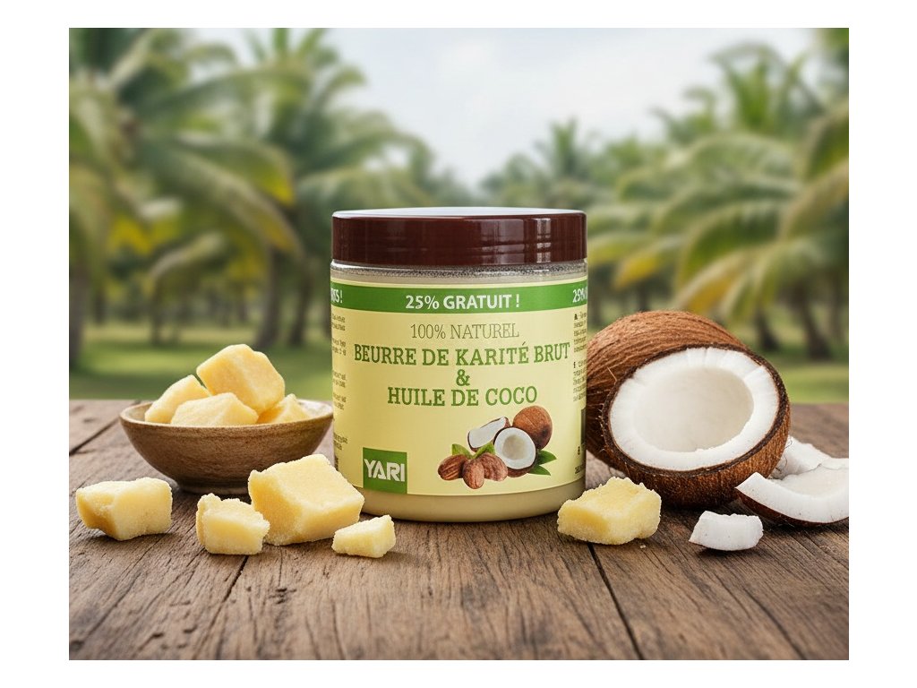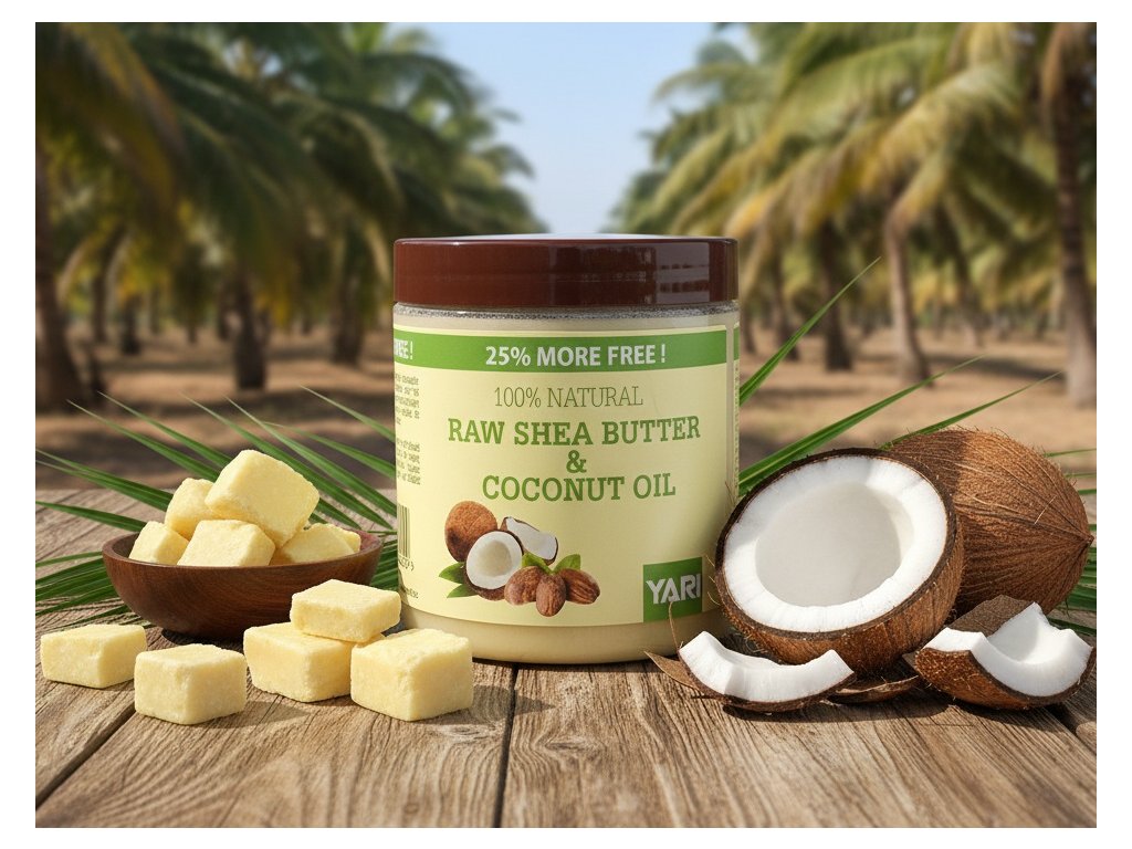 Táto vysoko kvalitná masť na prirodzené kučeravé vlásky akéhokoľvek typu obsahuje 100% bambucké maslo, ktoré je bohaté na vitamíny, Omega mastné kyseliny a anti-oxidanty pre vysokú efektivitu na podporu rastu a hustoty vlasov, ich výživu a výživu pokožku. Zároveň pridaný kokosový olej prevlhčovaním prirodzene reguluje hydratačné vlastnosti vlasovej pokožky a tým pomáha proti suchým vlasom, pričom efektívne vyživuje a zvláčňuje aj pokožku na celom tele a tvári. YARI RAW SHEA BUTTER & Coconut Oil masť revitalizuje vlasy, dodáva vlasom príjemný a prirodzený lesk a pomáha udržiavať pokožku pred jej vysušením a dehydratáciou. Vhodná aj pre použitie na pokožku celého tela najmä po sprchovaní.