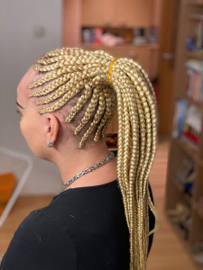 Galéria mojich prác, výtvorov a kreácií, ktoré tvorím a robím v mojom afro-salóne Africké Vlasy v Bratislave ako profesionálna braiderka - nájdete tu všetky možné aj nemožné africké štýly vláskov, príčeskov a predĺžení africkými aj európskymi metódami, na Slovensku a v Čechách známymi aj menej známymi, klasickými či modernými - afro-copíky, senegalské twisty, boxerské copy, copíky cornrows (zapletené na hlave), cornrows štýly s vysokým copom, pseudo-dredy, butterfly, gypsy a dread locky či rôzne africké príčesky a predĺženia metódami crochet braids (háčkovaním), našívaním vláskov (klasické aj skryté našívanie), predĺženie s keratínom, mikroring, aj nový štýl s gumičkami. Vlásky zapletám a predlžujem s umelými vláskami kanekalon, ako aj so ženskými "živými" vláskami, ktoré si u mňa zakúpite alebo si donesiete vlastné. Postupne pridávam a rozširujem portfólio afro-štýlov a predĺžení, ktoré u seba v afro-salóne robím, tak aby som Vám, mojim kočkám a zákazníčkam, mohla neustále ponúknuť nové up-to-date afro-štýly vláskov a boli ste vždy IN v centre pozornosti s najmodernejším COOL africkým účesom :-)