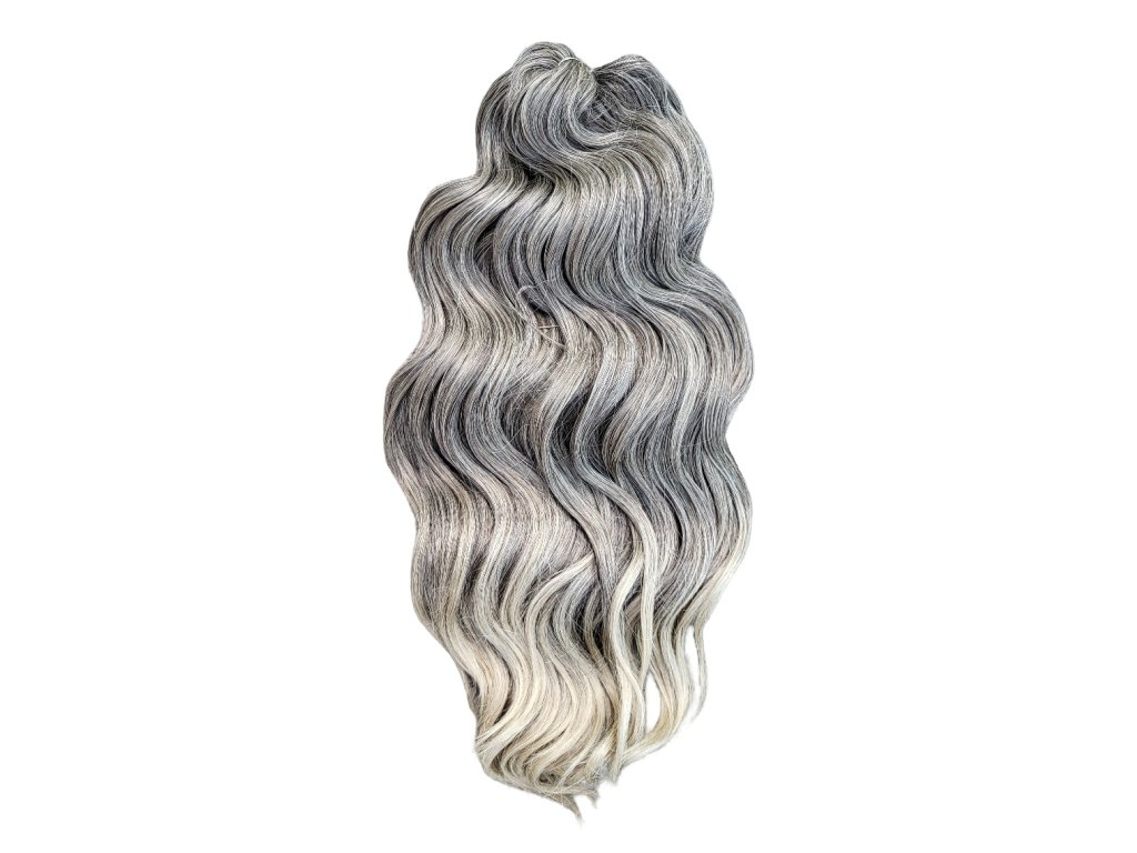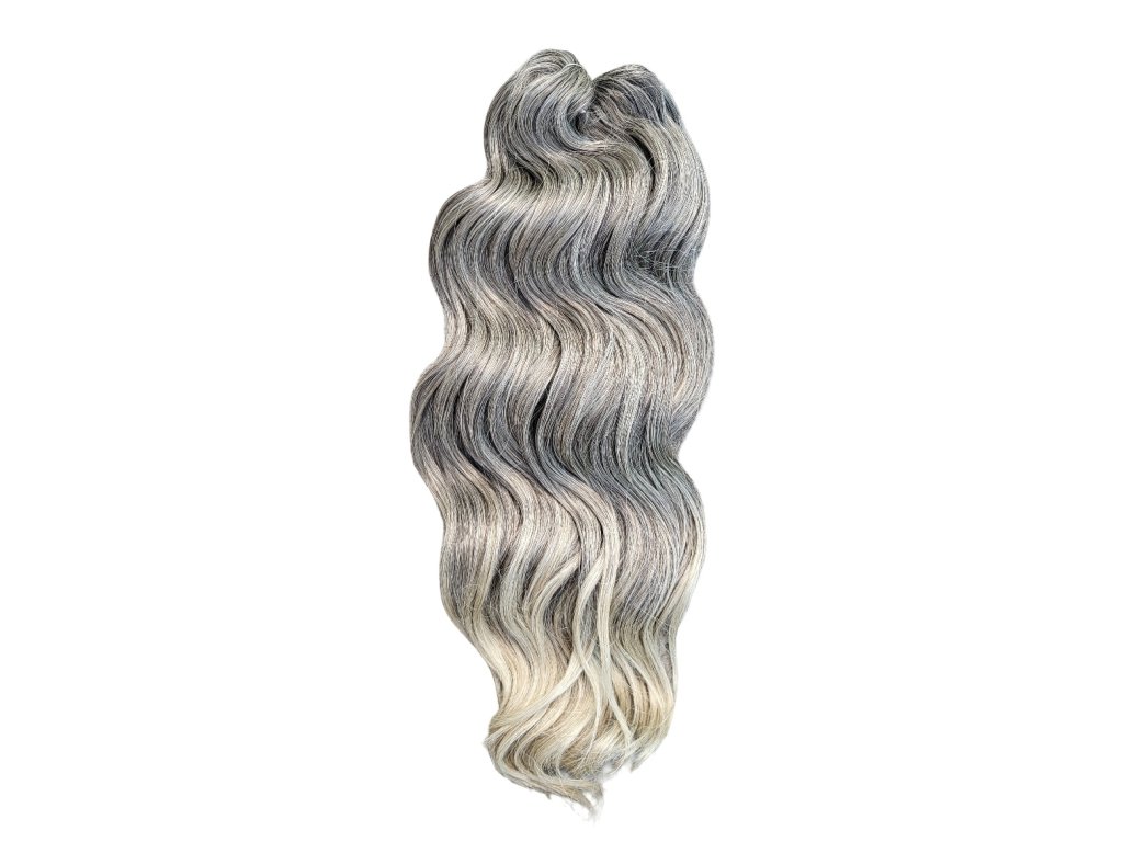 Tieto konkrétne vlnité vlasy brčky Crochet Braids sú farby studená blond - blond ombré T4/22 o dĺžke prameňov 40cm štýlu Manasi a hmotnosti balíka 300g, ideálne pre tvorbu predĺženia vlasov afrického štýlu s kučierkami, značky Africké Vlasy, ktoré sú jedni z najkvalitnejších česateľných Crochet Braids vlasov na trhu pre tvorbu kvalitného a trvácneho predĺženia vlasov či príčeskov, alebo aj iných vlasových štýlov, ktoré s nimi môžete vytvoriť. Crochet Braids vlnité 100% kanekalon vlasy sa už dlhé roky vyrábané jednak najmä čistých farieb (čierna, hnedá, blond, bordová, sivá apod.), pričom však pár rokov sú dostupné už aj v 2-farebných kombináciách (ombré). V najbližšej dobe očakávam, že sa na trhu objavia dokonca už aj moderné 3-farebné ombré kombinácie.