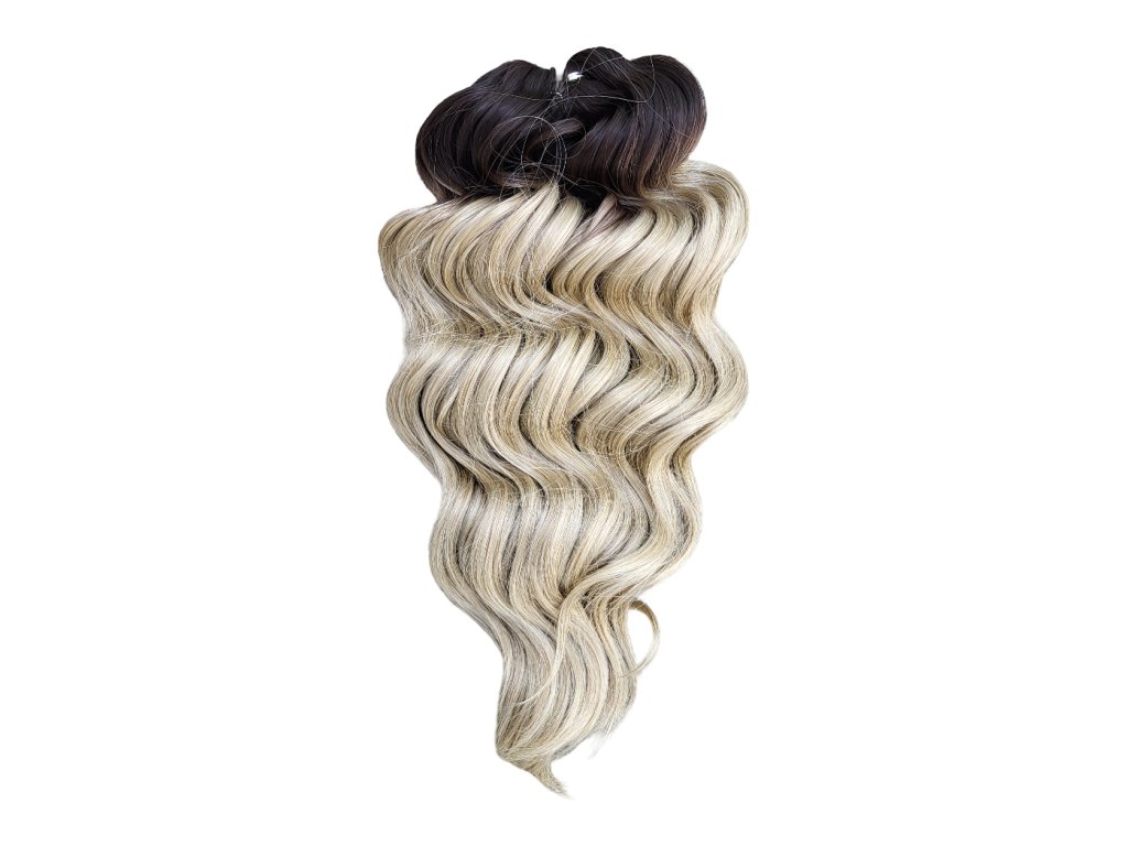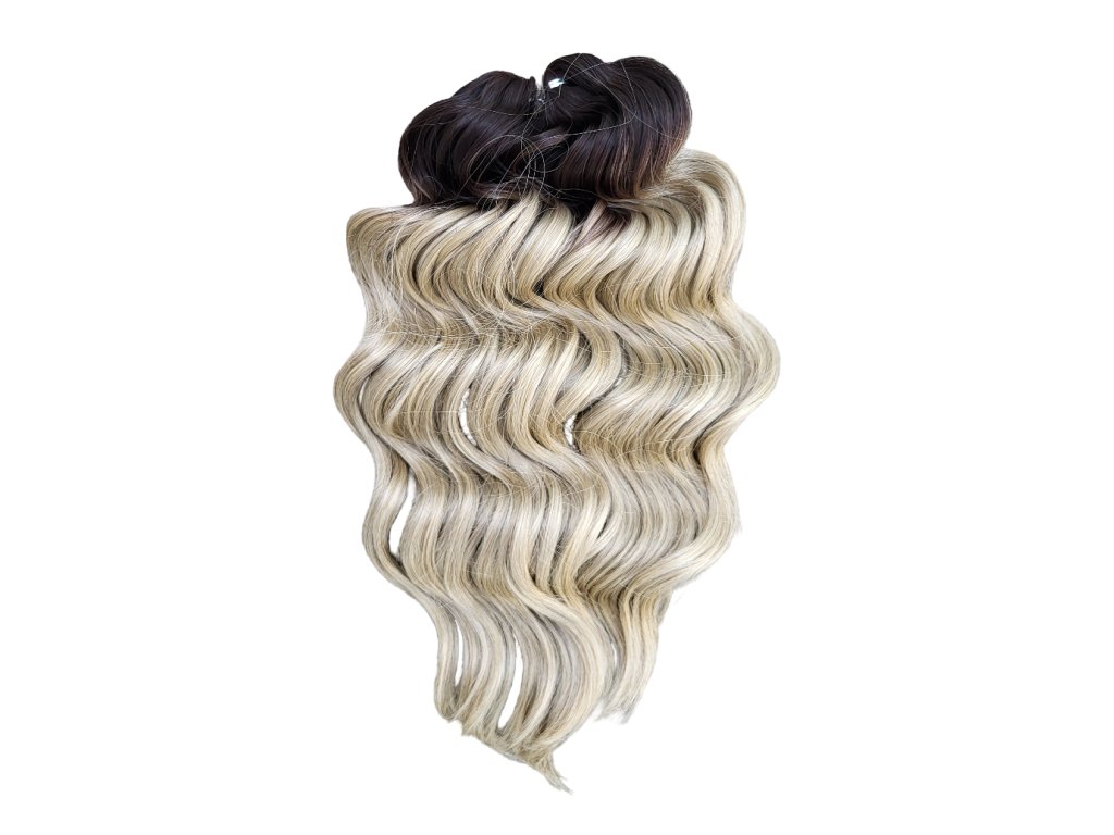 Tieto konkrétne vlnité vlasy brčky Crochet Braids sú farby tmavá hnedá - blond ombré TT4/24J o dĺžke prameňov 40cm štýlu Manasi a hmotnosti balíka 300g, ideálne pre tvorbu predĺženia vlasov afrického štýlu s kučierkami, značky Africké Vlasy, ktoré sú jedni z najkvalitnejších česateľných Crochet Braids vlasov na trhu pre tvorbu kvalitného a trvácneho predĺženia vlasov či príčeskov, alebo aj iných vlasových štýlov, ktoré s nimi môžete vytvoriť. Crochet Braids vlnité 100% kanekalon vlasy sa už dlhé roky vyrábané jednak najmä čistých farieb (čierna, hnedá, blond, bordová, sivá apod.), pričom však pár rokov sú dostupné už aj v 2-farebných kombináciách (ombré). V najbližšej dobe očakávam, že sa na trhu objavia dokonca už aj moderné 3-farebné ombré kombinácie.