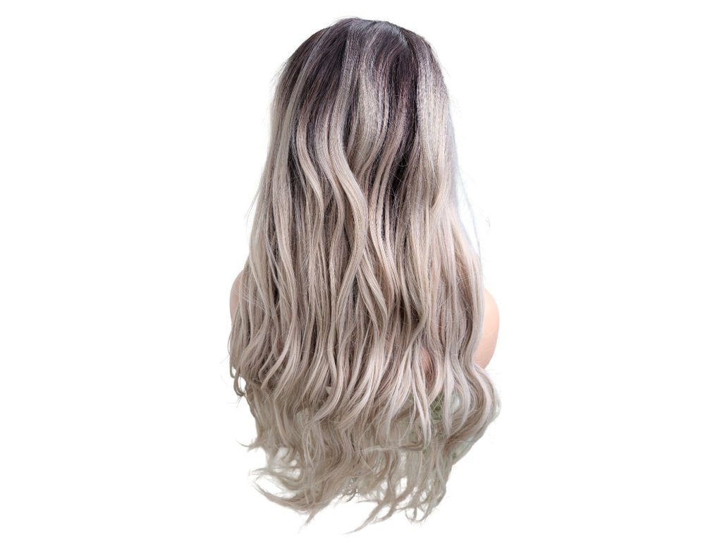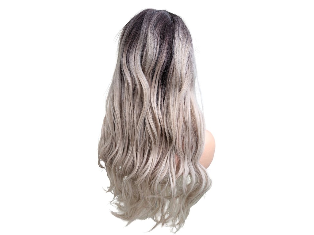 Parochňa Marcela vlnitá tmavá hnedá-studená blond ombré T4/56/PKD dlhá 75cm