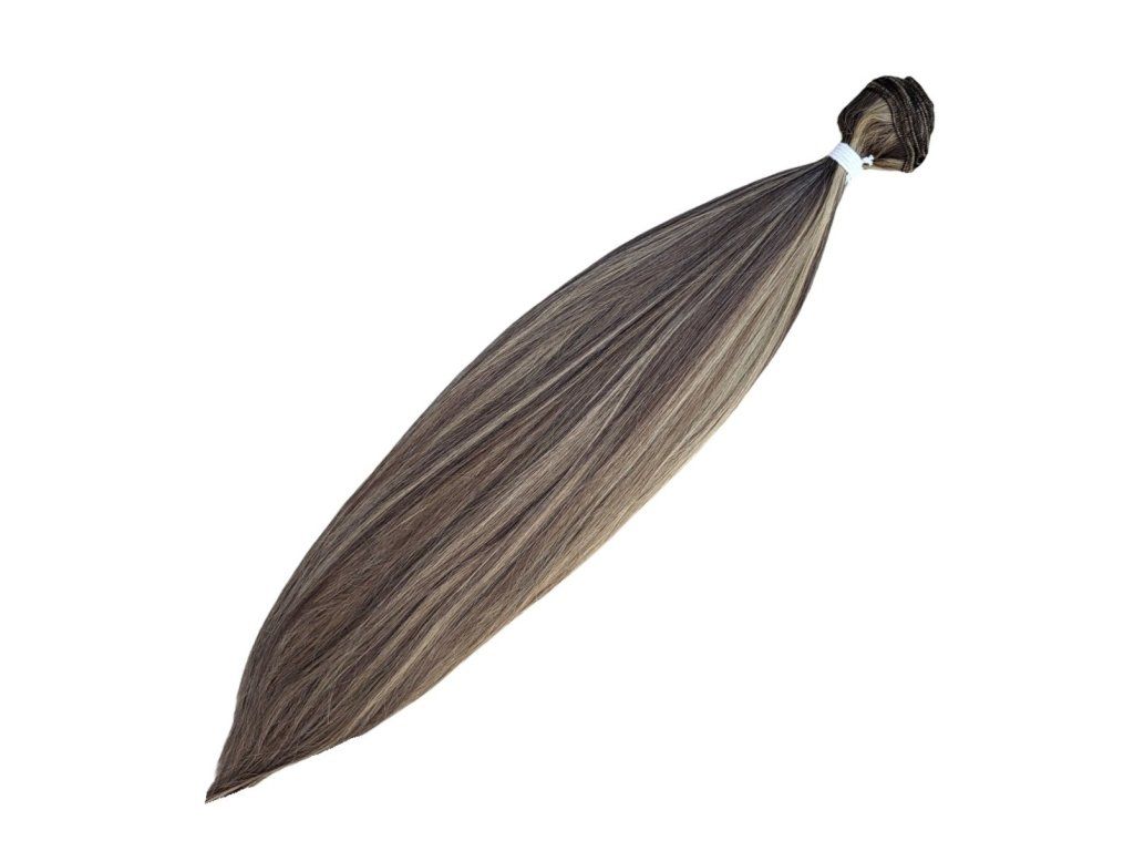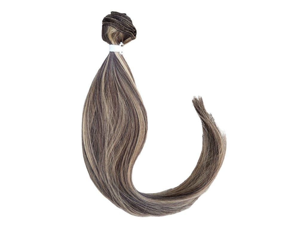 Rovné vlasy P4/10/16 tmavá hnedá-hnedá-blond melír 75cm na našívanie 200g