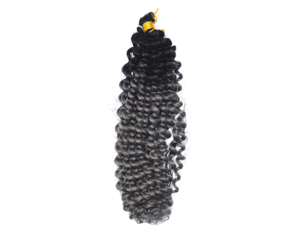 Tieto konkrétne kučeravé vlásky Crochet Braids sú 2-farebnej kombinácie (ombré) čierna - tmavá sivá PT-03 o dĺžke prameňov 36cm štýlu Water Wave a hmotnosti balíka 100g, ideálne pre tvorbu predĺženia vlasov afrického štýlu s kučierami, značky Africké Vlasy, ktoré sú jedni z najkvalitnejších Crochet Braids vláskov na trhu pre tvorbu kvalitného a trvácneho predĺženia vlasov či príčeskov či aj iných vlasových štýlov, ktoré s nimi môžete vytvoriť. Tieto Crochet Braids kučeravé 100% kanekalon vlásky sa už dlhé roky vyrábané jednak najmä čistých farieb (čierna, hnedá, blond, bordová, sivá apod.), pričom však pár rokov sú dostupné už aj v 2-farebných kombináciách (ombré). V najbližšej dobe očakávam, že sa na trhu objavia dokonca už aj moderné 3-farebné ombré kombinácie.