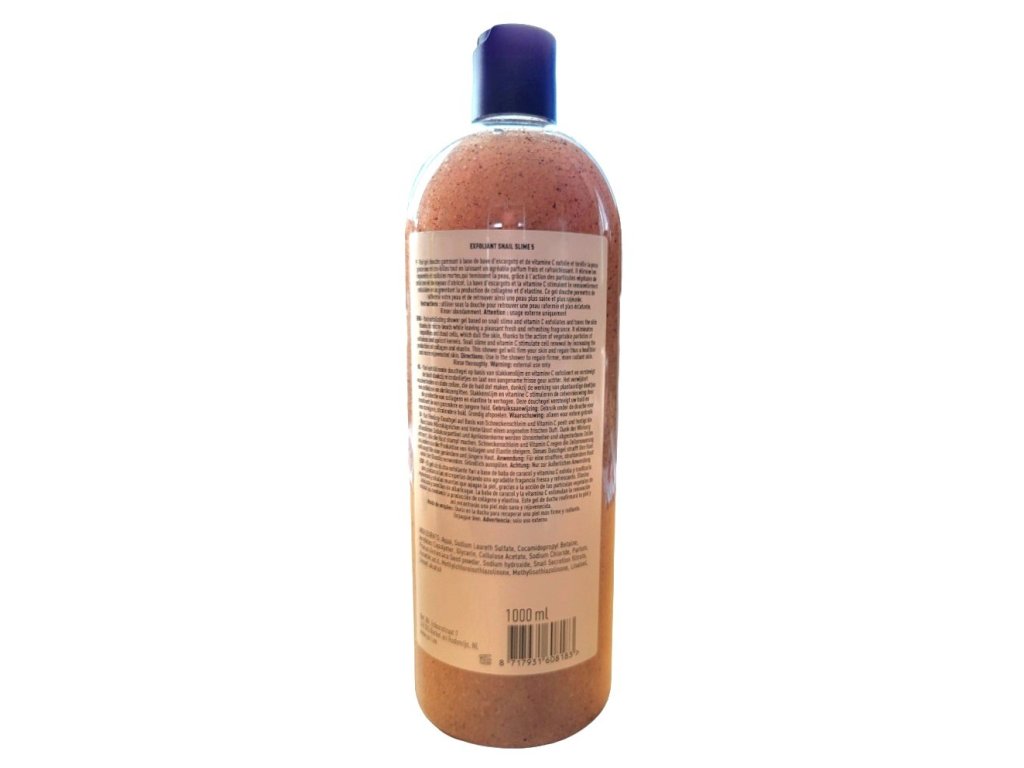 Zloženie: aqua (water), parfum (fragrance), snail secretion filtrate (snail slime), sodium laureth sulfate, cocamidopropyl betaine, prunus armeniaca (apricot) seed powder, acrylates copolymer, glycerin, ascorbic acid, linalool, cellulose acetate, sodium chloride, sodium hydroxide, benzyl alcohol, methylchloroisothiazolinone, methylisothiazolinone